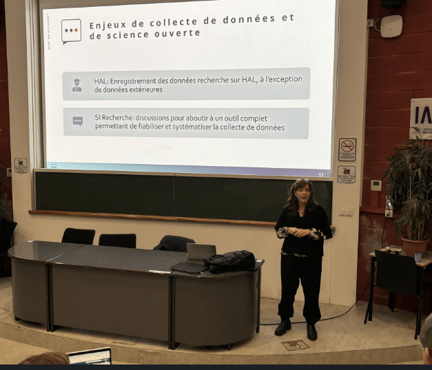 L’ouverture de la séance a été marquée par un point sur l’actualité scientifique du laboratoire. Isabelle Bourdon a notamment mis en lumière l’implication des chercheurs sur la plateforme HAL. Grâce à l’engagement de tous les groupes, la production scientifique 2025 affiche des données agrégées très positives, témoignant du rayonnement de la recherche en gestion à l’Université de Montpellier.